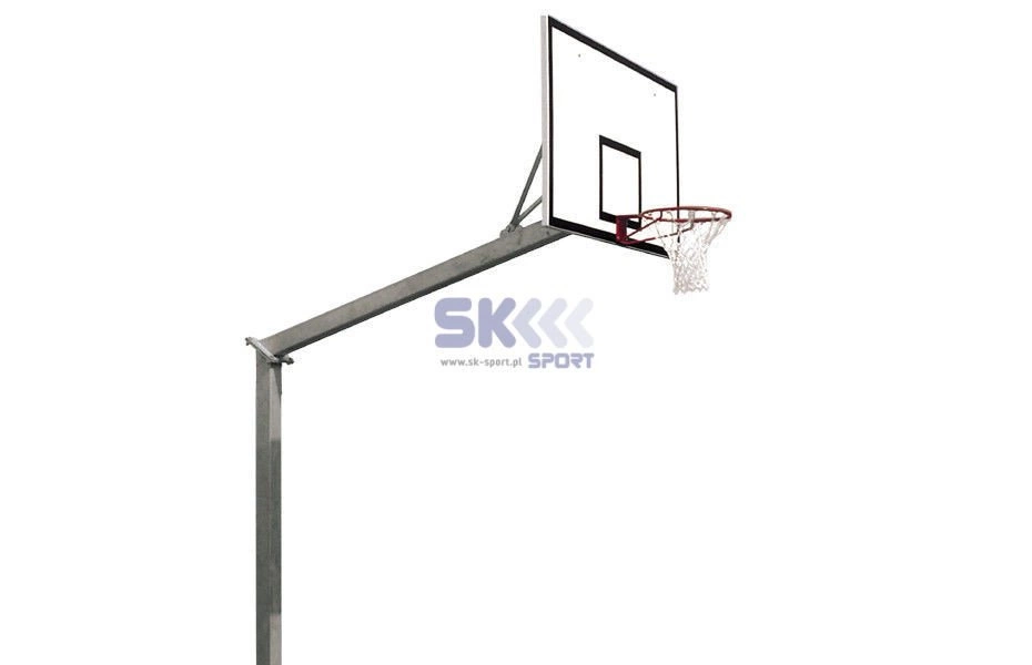 Zestaw do koszykówki Sure Shot 680 posiada trwałą i bezpieczną konstrukcje. Słup wykonany z ocynkowanej stali o kwadratowym profilu 120 x 120 mm, składa się z dwóch części -pionowego słupa oraz wysięgnika o długości 225 cm. Tablica wykonana z płyty laminowanej o wymiarach 180 x 105 cm. Obręcz Heavy Duty 263 wykonana z pełnego pręta stalowego ø16 mm. Posiada dodatkowo żeberko podpierające dla wzmocnienia obręczy. W komplecie siatka na 12 zaczepów. Maksymalny udźwig zestawu wynosi 270 kg. Opcjonalnie dostępny w wersji z blachą mocującą do podłoża, do której przykręca się słup za pomocą czterech śrub. Zgodny z normą EN-1270, posiada jednocześnie wymagany certyfikat Bezpieczeństwa B. Polecany na boiska szkolne lub osiedlowe.