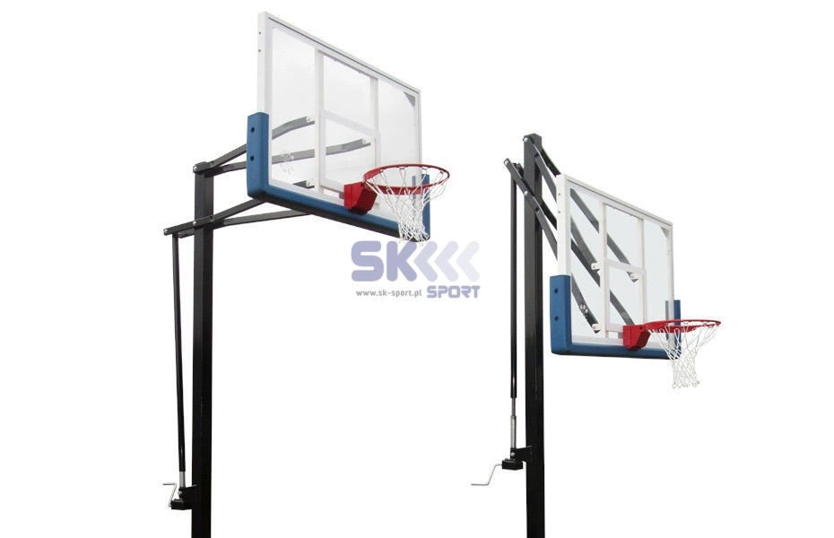 Profesjonalny zestaw do koszykówki Sure Shot California 690 posiada trwałą i bezpieczną konstrukcje o kwadratowym profilu 100 x 100 mm, grubości 4 mm Wysięgnik o długości 120 cm posiada mechanizm płynnej zmiany wysokości zawieszenia obręczy od 240 do 305 cm. Tablica Sure Shot model 155 wykonana ze szkła akrylowego (plexi) grubości 10 mm. Rozmiar 150 x 95 cm, linie malowane na biało. Tablica wzmocniona ramą aluminiową. Obręcz model 235 z systemem blokującym uchylanie do obciążenia 35kg (siłownik gazowy – 2200N).Posiada europejski rozstaw otworów 110 x 90 mm. Wykonana z pełnego pręta stalowego ø15 mm. Wzmocniona kołnierzem wykonany z blachy o grubości 3 mm. Tylna blacha o grubości 6mm. Malowana proszkowo. W komplecie z siatką (12 zaczepów). Zgodny z normą EN-1270, posiada jednocześnie wymagany certyfikat Bezpieczeństwa B. Polecany do zastosowania na boiskach szkolnych, klubowych lub osiedlowych.