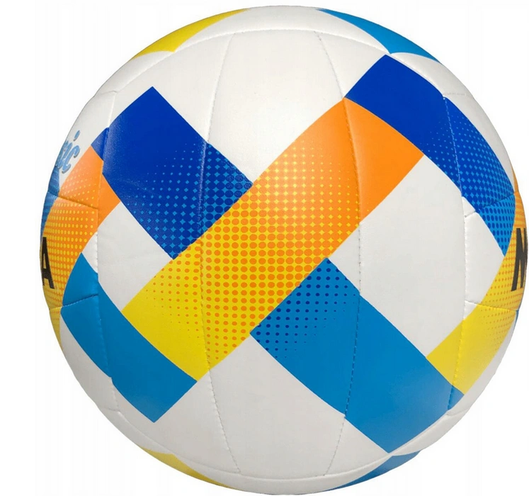 Charakterystyczna, wielokolorowa grafika w odcieniach żółci i niebieskiego zapewnia doskonałą widoczność piłki na piasku i w słońcu, co ułatwia obserwację toru lotu nawet przy bardzo dynamicznych zagraniach. Miękka, przyjemna w dotyku powierzchnia ogranicza ryzyko podrażnień dłoni, dzięki czemu piłka jest odpowiednia także dla młodszych graczy lub osób dopiero zaczynających swoją przygodę z siatkówką plażową.