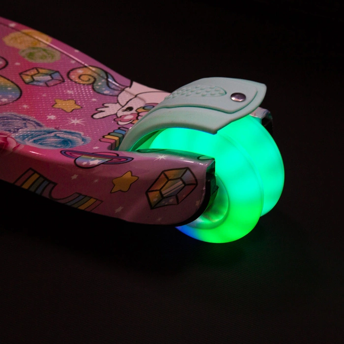 HLB15 to hulajnoga trójkołowa. Idealny sprzęt dla najmłodszych miłośników skatingu. Trzy kółka ułatwią naukę jazdy na hulajnodze i pozwalają nabrać wprawy. HLB15 posiada intuicyjny system sterowania. Kierownica służy głównie do utrzymywania równowagi, a manewry wykonujemy balansując i przechylając kierownicę w jedną lub drugą stronę. Takie rozwiązanie świetnie sprawdza się u najmłodszych pasjonatów jazdy. Dzięki regulowanej kierownicy łatwo dopasujemy sprzęt do wzrostu dziecka, pozwala to również cieszyć się hulajnogą przez dłuższy okres czasu. Hulajnoga wyposażona jest w hamulec nożny, który zwiększa bezpieczeństwo podczas jazdy, a wysoki komfort zapewnią łożyska klasy ABEC7. Kolejnym atutem HLB15 są świecące kółka. Zapewniają dużo radości dzieciom ale również powodują, że użytkownik jest bardziej widoczny. HLB15 to mała, lekka łatwa w rozłożeniu hulajnoga. Idealny sposób na sprawienie radości swojemu dziecku. Specyfikacja: Wymiary: Długość: 56 cm Szerokość: 30 cm Wysokość: 80,5 cm Wymiary po złożeniu: Długość: 64 cm Szerokość: 30 cm Wysokość: 14 cm Materiał: PP Aluminium Antypoślizgowy podest Wymiary podestu: Długość: 32,5 cm Szerokość: 13 cm Łożyska: ABEC 7 Kółka: Przednie: PU 120 mm, LED Tylne: PU 75 mm, LED Zakres regulacji kierownicy: 56,5 - 75 cm Maksymalna waga użytkownika: 50 kg Waga produktu: 2,7 kg Uwagi: Nie przeznaczona do użytku komercyjnego Zgodna z normą PN-EN 71-1:2014+A1:2018-08 Gwarancja 24 miesiące