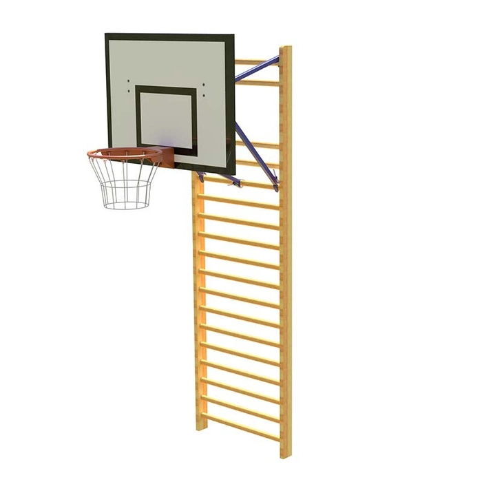 Zestaw do koszykówki zawieszany na drabince gimnastycznej, przeznaczony do treningów w salach gimnastycznych. Składa się z tablicy oraz obręczy z siatką. Wyposażony jest w stalowy uchwyt do zawieszania na szczeblach drabinek gimnastycznych. Konstrukcja uchwytów zaczepowych gwarantuje bezpieczne i stabilne zawieszenie tablicy. Zestaw bardzo łatwy w montażu i wygodny w magazynowaniu.