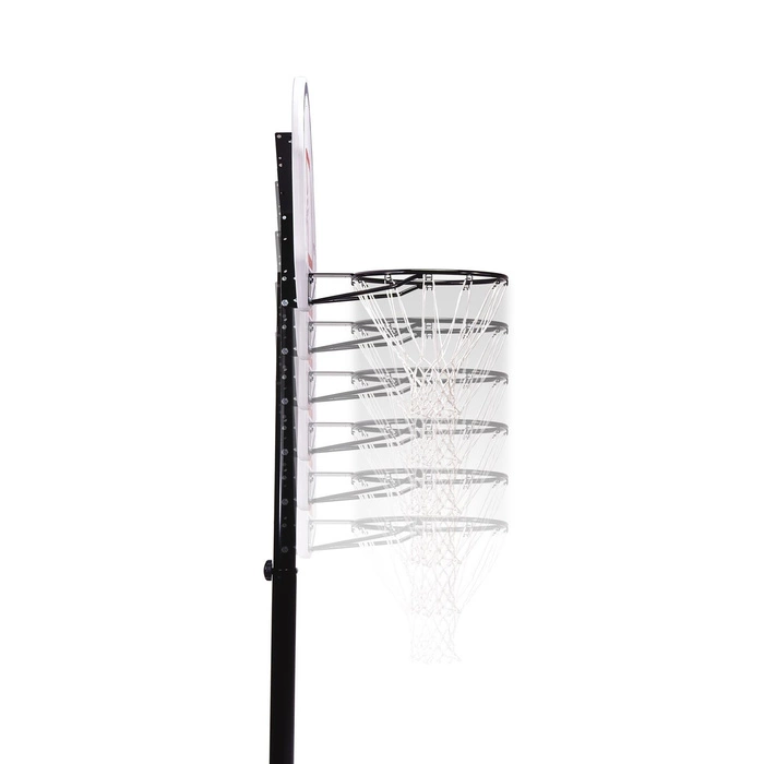 Stojak do koszykówki Lifetime Cleveland 1268 wyposażony jest w tablicę w rozmiarze 44'' (111,7 cm) wykonaną w technologii Impact, formowanej z wysokiej gęstości polietylenu, gwarantującej wytrzymałość i niezawodność. Posiada system teleskopowej regulacji wysokości, co umożliwia szybkie, bezproblemowe ustawienie tablicy na odpowiednich wysokościach, w zakresie od 229 do 305 cm (standardowe wymiary tablicy) co 15,2 centymetrów. Mocna solidna konstrukcja zapewniająca pełną stabilność stojaka, składająca się z 3-częściowego stalowego, malowanego proszkowo słupa o średnicy 6,9 cm, zabezpieczonego antykorozyjną i wodoodporną warstwą oraz podstawy Streamline o wymiarach 110,4 x 53,3 x 10,1 cm, wykonanej z trwałego polietylenu, mogącej pomieścić 48 litrów wody lub 69 kilogramów piasku. W zestawie znajduje się jeszcze wytrzymała obręcz Classic, odporna na warunki atmosferyczne wraz z nylonową siatką oraz osłona dolnej krawędzi tablicy, zwiększająca bezpieczeństwo.