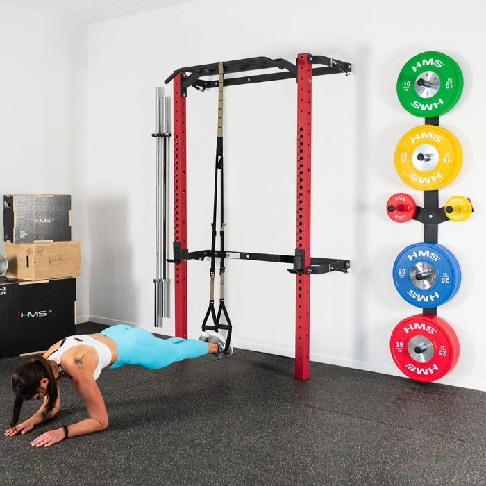 Składana klatka treningowa KLT23 od HMS została zaprojektowana w taki sposób, by trafiła w aktualne trendy rynkowe oraz spełniła oczekiwania najbardziej wymagających klientów. Klatka w tym wariancie jest sprzedawana z drążkiem do podciągania, hakami pod gryf oraz podporami bezpieczeństwa. Dzięki KLT23 zyskasz nowe możliwości treningowe. Wielofunkcyjny trening na małej przestrzeni Klatka treningowa KLT23 jest mocowana do ściany, co zapewnia jej stabilność i bezpieczeństwo. Możesz ją łatwo składać, gdy nie jest używana, dzięki czemu nie zajmuje wiele miejsca. To ogromny atut tego sprzętu, ponieważ mogą z niego korzystać osoby z ograniczoną przestrzenią do treningu. Po złożeniu w najgłębszym miejscu klatka zajmuje zaledwie 31 cm od ściany! KLT23 od HMS to solidna konstrukcja, dzięki której wykonasz szeroki zakres ćwiczeń. Drążek do podciągania i haki pod gryf Klatka posiada wielofunkcyjny drążek do podciągania, który dzięki różnym możliwościom chwytu pozwala na rozwijanie mięśni pleców, ramion i klatki piersiowej. Podciąganie to jedno z najlepszych ćwiczeń na górną część ciała, ponieważ angażuje wiele grup mięśniowych i poprawia mobilność stawów. Aby uprościć sobie to ćwiczenie, wystarczy użyć specjalnych gum oporowych. W KLT23 znajdziesz również dwa haki pod gryf, które możesz zamontować na dowolnej wysokości. Podpory bezpieczeństwa W KLT23 znajdziesz także specjalne podpory, które możesz przymocować do ramy klatki, aby zapewnić sobie maksymalne bezpieczeństwo podczas treningu z dużymi ciężarami. Podpory mogą być zamocowane na dowolnej wysokości i używane podczas wykonywania ćwiczeń takich jak wyciskanie na ławce czy przysiady ze sztangą, bez obawy o upuszczenie ciężaru. Z podporami w KLT23 możesz przekraczać granice własnej wytrzymałości. Zestaw dla każdego Klatka treningowa KLT23 od HMS to sprzęt, który zaspokoi potrzeby miłośników treningu siłowego i fitnessu. Niezależnie od tego, czy jesteś początkujący, czy zaawansowany, znajdziesz tu wszystko, co potrzebne do efektywnego i bezpiecznego treningu. KLT23 urozmaici twoją rutynę treningową i pozwoli Ci osiągnąć jeszcze lepsze rezultaty. Do zestawu możesz zamówić także specjalne wieszaki ścienne, w skład których wchodzą STR28 uchwyt na gryfy oraz STR29 stojak na obciążenia.  Specyfikacja: Klatka treningowa Wysokość całkowita po złożeniu: 276 cm Wysokość po rozłożeniu: 230 cm Szerokość całkowita: 142 cm Zewnętrzna szerokość między ramami: 124 Wewnętrzna szerokość między ramami: 109 cm Odległość ramy od ściany po rozłożeniu: 54 cm Odległość ramy od ściany po złożeniu: 10 cm Średnica ramy: 7,5 cm Kolor: czarno-czerwony Minimalna powierzchnia wymagana do montażu klatki: Wysokość: 276 cm Głębokość: 150 cm Szerokość: 150 cm Maksymalne obciążenie: 300 kg Drążek do podciągania Szerokość: 110 cm Głębokość: 20,5 cm Odległość drążka od ściany po rozłożeniu: 73 cm Odległość drążka od ściany po złożeniu: 31 cm Haki pod gryf: Szerokość: 7,5 cm Wysokość: 17 cm Regulacja wysokości: 48-164 cm Podpory bezpieczeństwa: Długość: 60 cm Szerokość: 5 cm Regulacja wysokości: 90-170 cm Montaż wybranych akcesoriów na ramy: 21-stopniowa regulacja wysokości Co 5,5 cm  Materiał: Stal (malowana proszkowo) Uwagi: Nie przeznaczona do użytku komercyjnego Gwarancja 24 miesiące