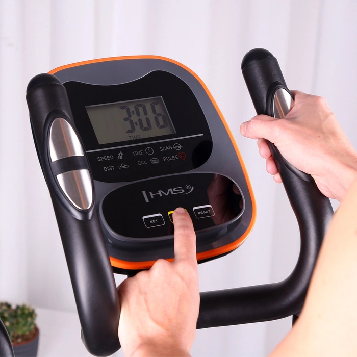 Śledź swoje postępy i kontroluj efektywność ćwiczeń dzięki wbudowanemu komputerowi, który wyświetla na wygodnym i czytelnym panelu LCD takie dane jak: czas, odległość, prędkość, puls i kalorie. Trenażer posiada sensory dotykowe umieszczone na kierownicy, które pozwalają na monitorowanie pracy serca i dostosowanie intensywności treningu do swojej kondycji.