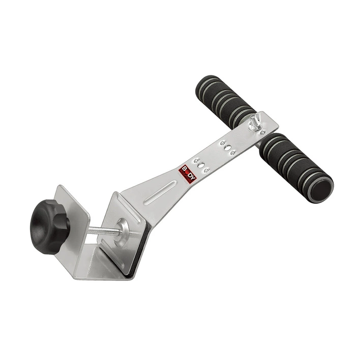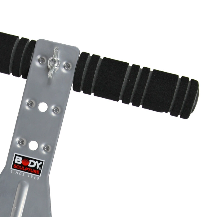 Uchwyt na nogi do brzuszków BB 620E marki Body Sculpture umożliwia intensywny trening środkowej i dolnej części mięśni grzbietu w warunkach domowych. Ćwicząc z nim możesz wzmocnić mięśnie brzucha, grzbietu. Uchwyt posiada regulowany zacisk, który umożliwia dopasowanie uchwytu do grubości drzwi. Wykonany został z wysokiej jakości chromowanej stali, dlatego jest niezwykle wytrzymały i trwały. Blokada na stopy została pokryta pianką neoprenową, która pozwala pewnie i komfortowo korzystać z drążka.