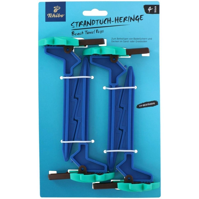 ŚLEDZIE KLIPSY UCHWYTY DO RĘCZNIKA PLAŻOWEGO KOCA 4 SZT NIEBIESKIE pomogą ci przytwierdzić namiot, koc plażowy, parawan do podłoża. Zestaw składa się z 4 dużych śledzi, wykonanych z tworzywa sztucznego, wyposażonych w długie, mocne ostrze w kształcie litery V.