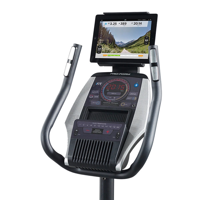 Rower programowany ProForm® 225 CSX to solidny rower stacjonarny zaprojektowany do użytku domowego. Atuty sprzętu to koło zamachowe o wadze 8 kg, 20 poziomów oporu magnetycznego, regulowane siodełko, wentylator, ergonomiczne pedały z paskami bezpieczeństwa oraz szeroki zakres programów treningowych, które zapewniają zróżnicowanie treningu na każdym etapie. Sprzęt posiada również port umożliwiający podłącznie urządzeń muzycznych i słuchanie własnej muzyki, wbudowany uchwyt na tablet, uchwyt na bidon a do tego obszerne stopki poziomujące, zapewniające stabilność sprzętu nawet na nierównym podłożu.