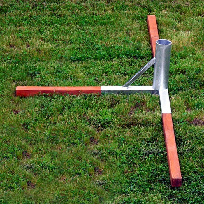 Tuleja mocująca słupka aluminiowego 116x76 mm, stalowa cynkowana ogniowo (Φ133 mm), wersja do siatkówki plażowej, łącznie z drewnianymi krawędziakami.