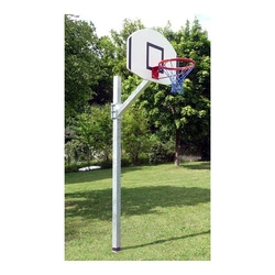 Treningowa jednosłupowa konstrukcja do koszykówki z tablicą epoksydową o wymiarach 112x77,5 cm, wysięg 73 cm, instalowana na stałe w podłożu, przeznaczona do gry na otwartej przestrzeni (place zabaw, boiska szkolne).