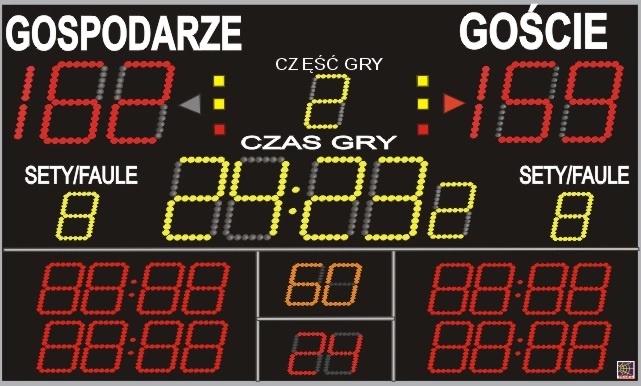 Tablica wyników Elektroniczna TZG-270.702  z licznikami kar, czasem trenera i zegarem 24 sek.