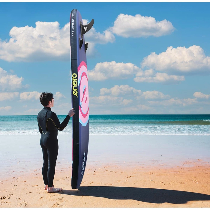 POMPOWANA DESKA SUP MARKI ENERO to idealny wybór na indywidualne lub rodzinne wyjazdy weekendowe, zarówno dla amatorów, jak i dla sportowców. Nie ma problemu z jej przetransportowaniem, ponieważ po złożeniu bez problemu zmieści się w bagażniku dzięki dołączonego do zestawu plecaka do przechowywania deski, a specjalny uchwyt z rączką ułatwi jej przenoszenie.
