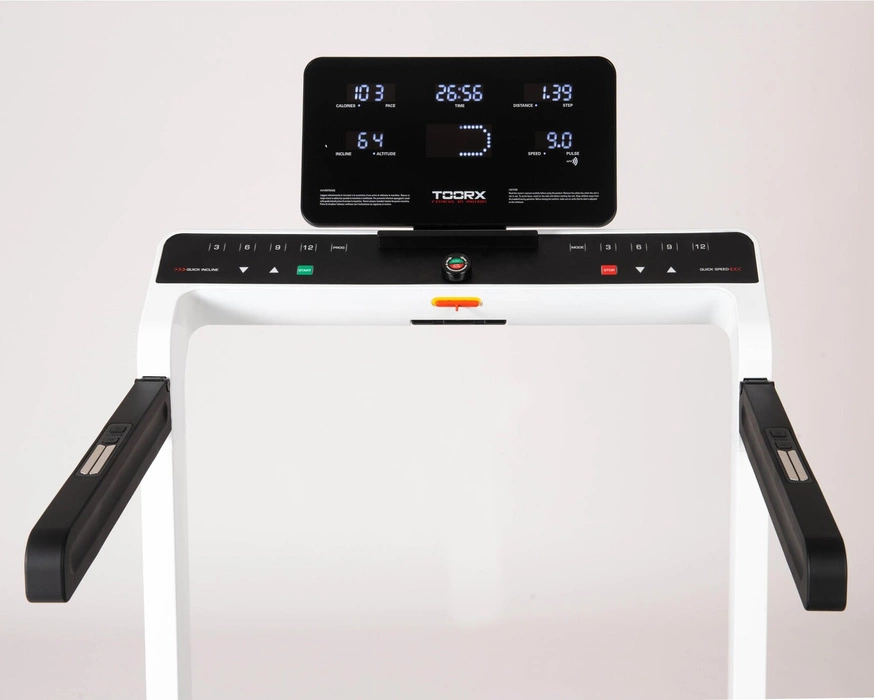 - Regulacja prędkości i nachylenia: Prędkość można regulować w zakresie od 1,0 do 18,0 km/h z dokładnością co 0,1 km/h. Elektroniczna regulacja kąta nachylenia od 0 do 12% umożliwia symulowanie różnych rodzajów terenów, co zwiększa efektywność treningów.