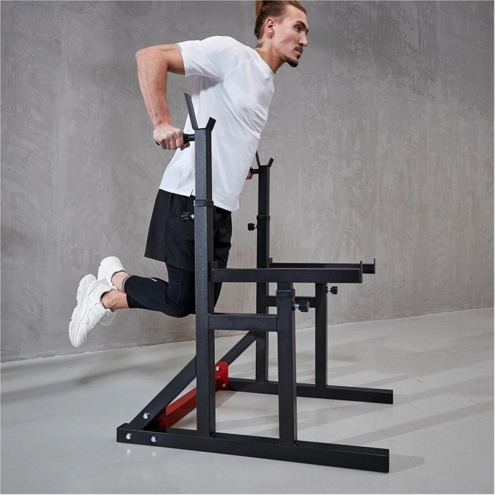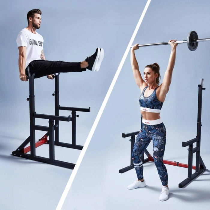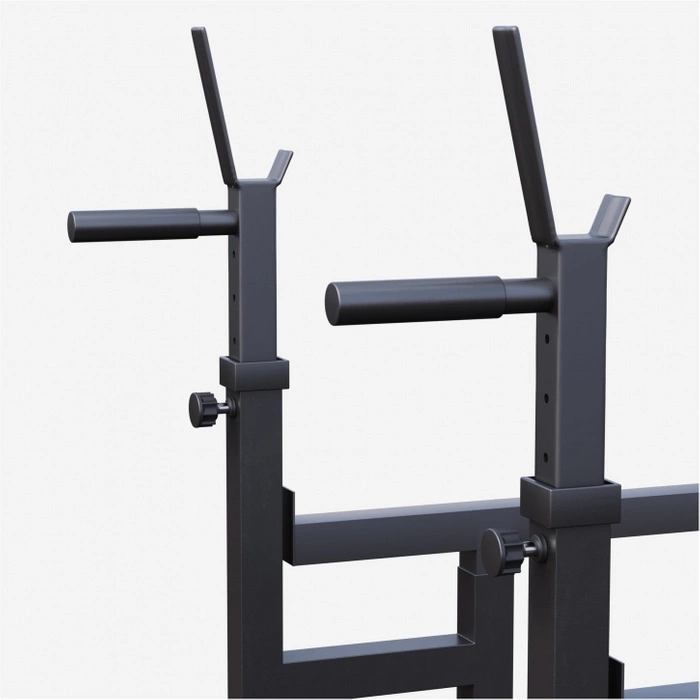 Stojaka możesz użyć zarówno do wszystkich ćwiczeń ze sztangą oraz do dipów dzięki czemu Twój trening będzie bardzo urozmaicowny.