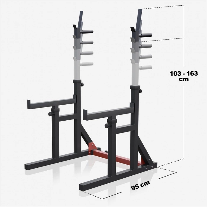 Dzięki możliwości regulacji szerokości stojak jest idealnym wyborem do ćwiczeń z ławką - możesz rozsunąć go na dowolną odległość dzięki czemu pasuje do każdej ławki.