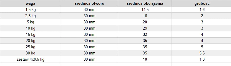 Obciążenie pasuje do wszystkich sztang o średnicy 30 mm.