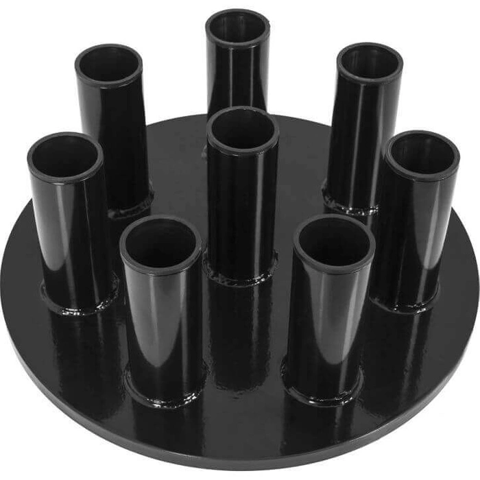 Mniej znaczy więcej: stojak sportowy Gorilla urzeka prostym, lecz funkcjonalnym designem. Składa się z ciężkiej, stabilnej podstawy z ośmioma przyspawanymi uchwytami. Każdy uchwyt wyposażony jest w pręty odpowiedni dla gryfów 50/51 mm- olimpijskich - oraz regularnych gryfów 30/31 mm. Ten stojak na sztangę oferuje wystarczająco dużo miejsca na pełen zestaw sztang. Dzięki czarnej farbie pasuje do praktycznie do każdego wnętrza, a po włożeniu do niego gryfów wygląda bardzo atrakcyjnie.