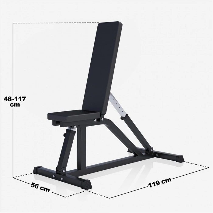 Ławeczka do hantli ma bardzo wygodne wyściełane oparcie i siedzisko z możliwością regulacji kąta nachylenia. Dzięki temu dostosujesz przyrząd do swojego treningu, a nie odwrotnie.