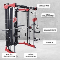 Ta solidna, wysokiej jakości wykonana wielofunkcyjna stacja cieszy się swoją masywną konstrukcją. Oferuje Ci wszystkie możliwości dla zbilansowanego treningu wszystkich grup mięśniowych. Trenujesz elastycznie we własnych czterech ścianach – bez konieczności dojazdu i oczekiwania. Przemyślana konstrukcja i wysoki standard bezpieczeństwa wielofunkcyjnej stacji zapewniają skuteczny, bezpieczny trening, podczas gdy jej eleganckie wzornictwo harmonijnie wkomponowuje się w Twoją domową siłownię.
