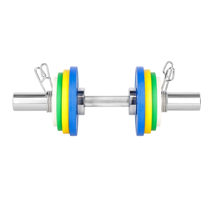 W zestawie znajdują się dwa zaciski sprężynowe, które umożliwiają szybkie i bezpieczne mocowanie talerzy. Zmiana obciążenia staje się błyskawiczna, co pozwala na płynne przechodzenie między różnymi ćwiczeniami lub intensywność treningu interwałowego. To rozwiązanie świetnie sprawdza się podczas treningów obwodowych lub superserii, gdzie liczy się każda sekunda.