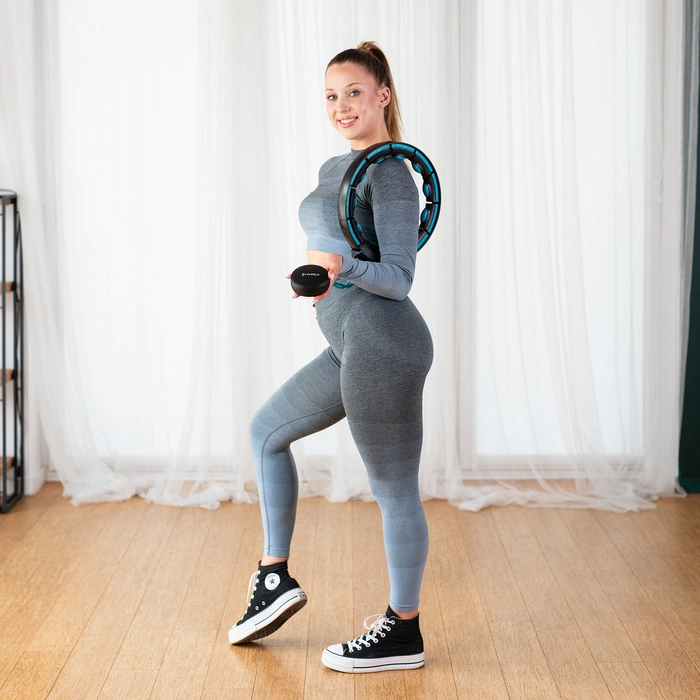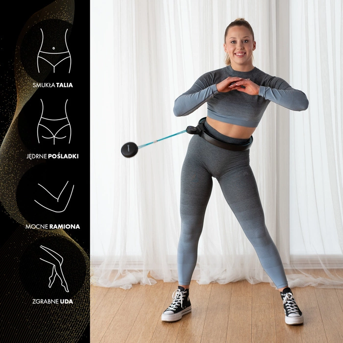 Jednym z najważniejszych elementów zestawu jest specjalnie zaprojektowana piłka obciążeniowa, która została wypełniona piaskiem, zapewniając odpowiednią masę (około 300 g) do skutecznego treningu. Dzięki płaskiemu kształtowi piłki, użytkowanie hula hopu jest wygodne nawet przy dłuższych sesjach, a ruchy pozostają płynne i precyzyjne.