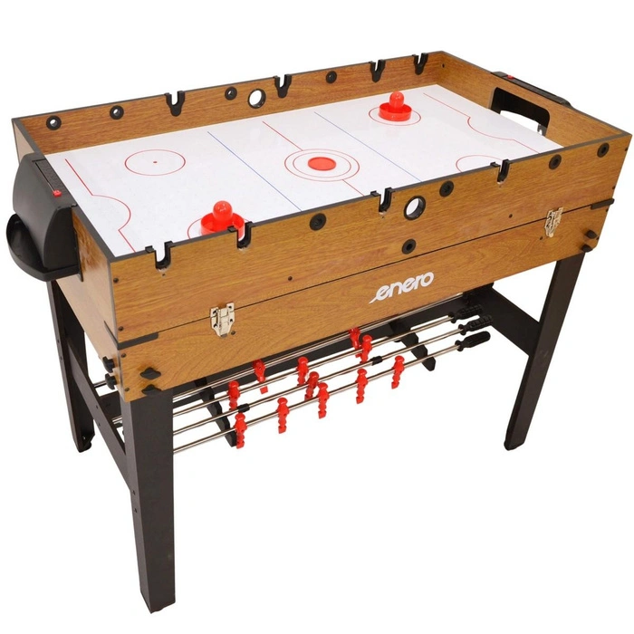 Ten stół został zaprojektowany tak, aby szybko i wygodnie zmienić planszę i wybrać jedną z 3 gier. Zamiast inwestować w oddzielne stoły do każdej gry, możesz cieszyć się piłkarzykami, bilardem i cymbergajem w jednym kompaktowym zestawie.