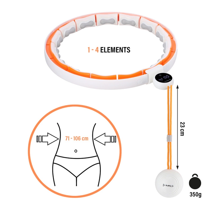 Hula-hop HHM21 jest wyposażony w innowacyjne wypustki z elastycznego termoplastycznego elastomeru (TPE), co znacznie zwiększa komfort podczas użytkowania. Elastyczność i trwałość TPE, a także jego hipoalergiczne właściwości, pozwalają na bezpieczne i komfortowe treningi, zapewniając stabilny chwyt i delikatny masaż podczas obrotów.