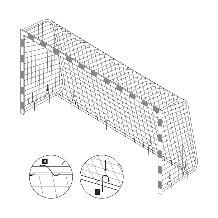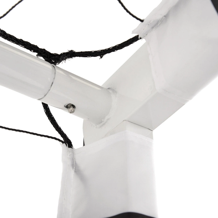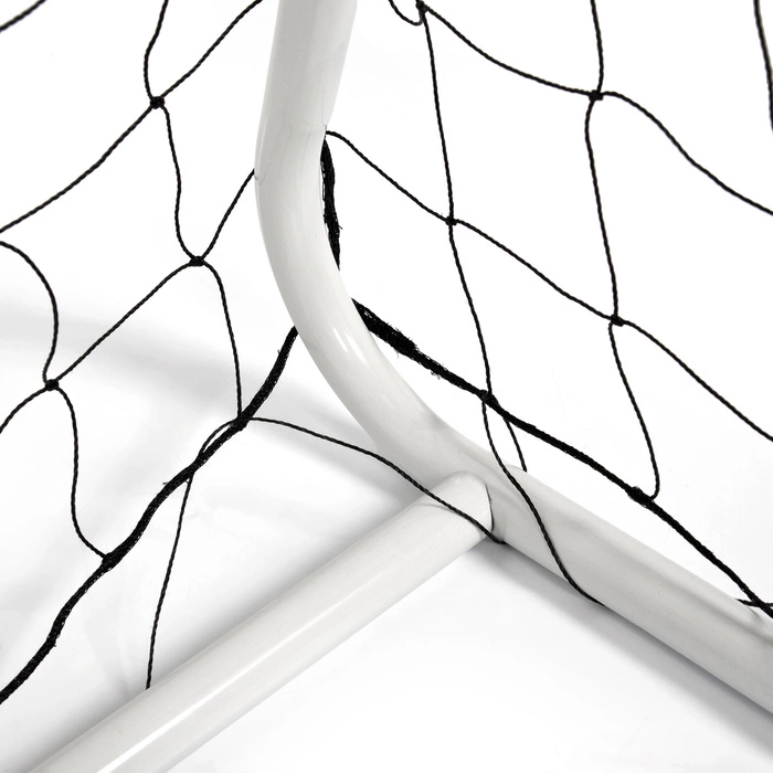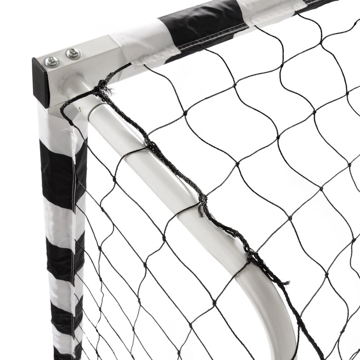 Stabilna stalowa rama zapewnia wytrzymałość podczas intensywnych rozgrywek. Grube ścianki profili zwiększają stabilność i masę bramki. Poprzeczka i słupki są mocowane na śruby, a tylna część składa się z rurek łączonych za pomocą zatrzasków. Składana konstrukcja ułatwia montaż i przenoszenie.