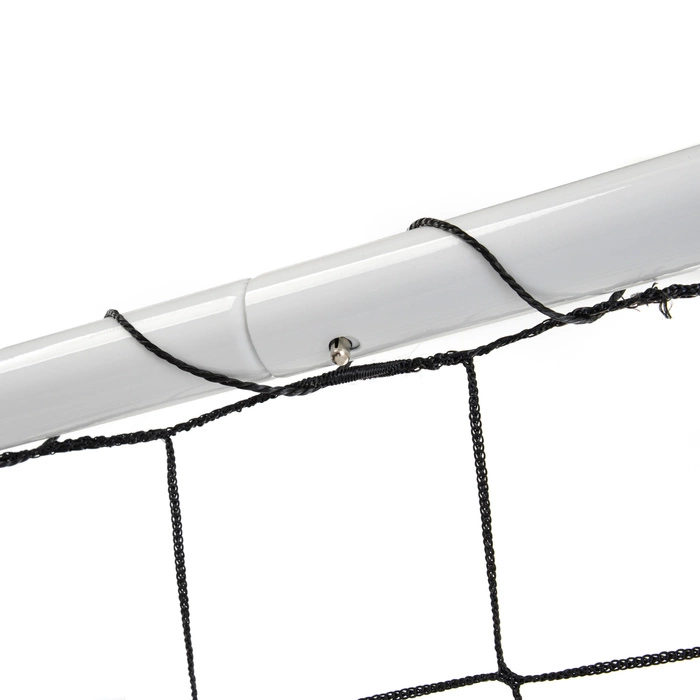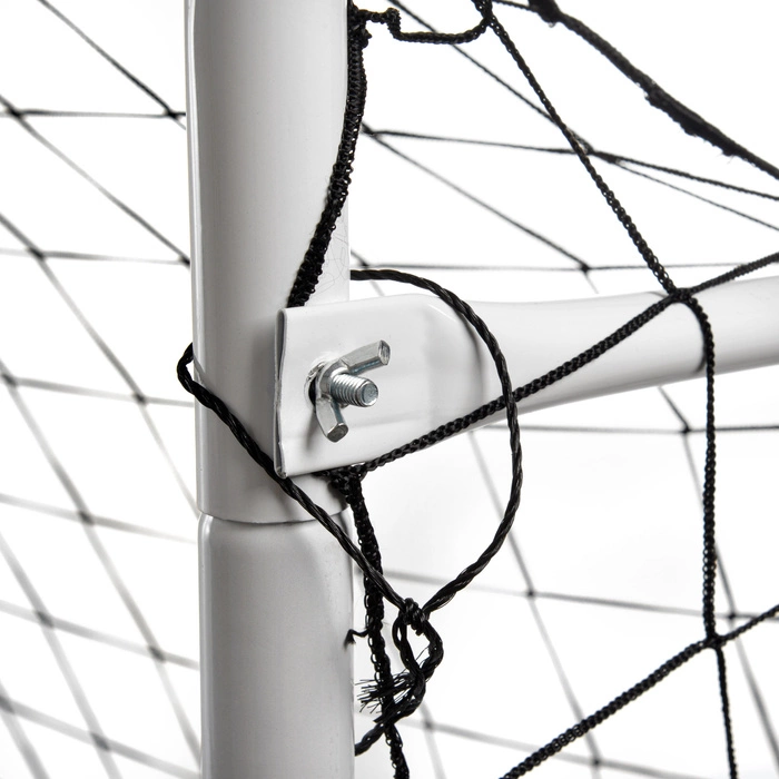 Zestaw zawiera wszystkie niezbędne elementy, w tym siatkę i kołki do zamocowania ramy do podłoża oraz dodatkowe wsporniki stabilizujące. Mocny poliestrowy materiał siatki zapewnia wieloletnie użytkowanie. Bez problemu wytrzyma nawet najsilniejsze strzały małych piłkarzy oraz niekorzystne warunki atmosferyczne, np. silne porywy wiatru. Kołki, dzięki ostrym zakończeniom, z łatwością mocują bramkę do podłoża, umożliwiając bezpieczne ustawienie jej bez wystających elementów i minimalizują ryzyko potknięcia się o konstrukcję oraz jej elementy.