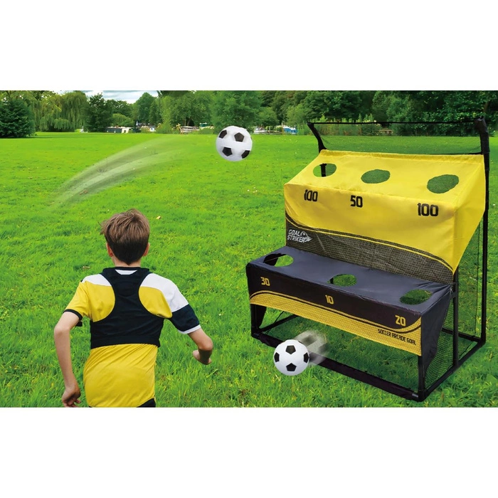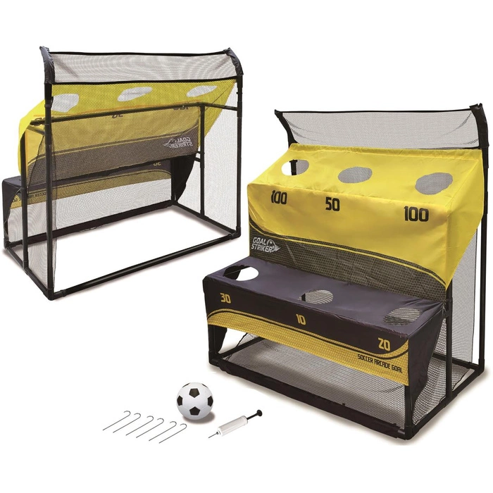 Zestaw ma dwie funkcje, z jednej strony może być zwykłą bramką do gry w piłkę nożną, z drugiej strony posiada tarcze strzeleckie na dwóch poziomach i wygiętą ramę górną, idealne do ćwiczenia celności.