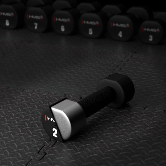 Każda hantla wyposażona została w precyzyjnie radełkowany uchwyt, który zapewnia stabilność i wygodę podczas każdego treningu. Nawet podczas intensywnych ćwiczeń dłonie nie ślizgają się, co znacząco zwiększa bezpieczeństwo użytkowania. Przykładowo, podczas wykonywania wyciskania nad głowę lub przysiadów z obciążeniem, możesz być pewien, że hantle nie wyślizgną się z rąk. To szczególnie ważne dla osób początkujących, ale docenią to także zaawansowani użytkownicy podczas wieloseriowych treningów siłowych czy funkcjonalnych.