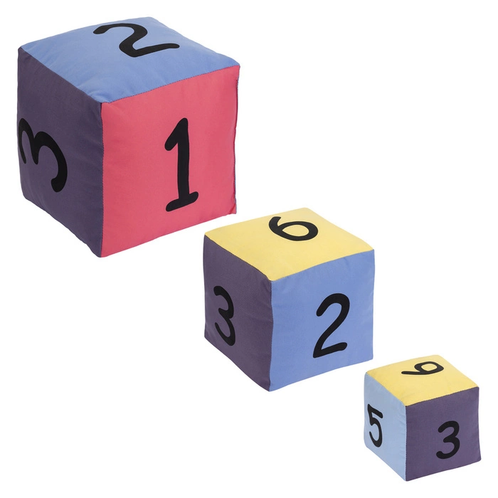 Kostka edukacyjna wypełniona pluszem jest lekka i bezpieczna w zabawie. Dostępna w trzech różnych rozmiarach - 10 cm, 15 cm i 20 cm - a jej wielkość można dostosować do potrzeb lub wieku grupy.
