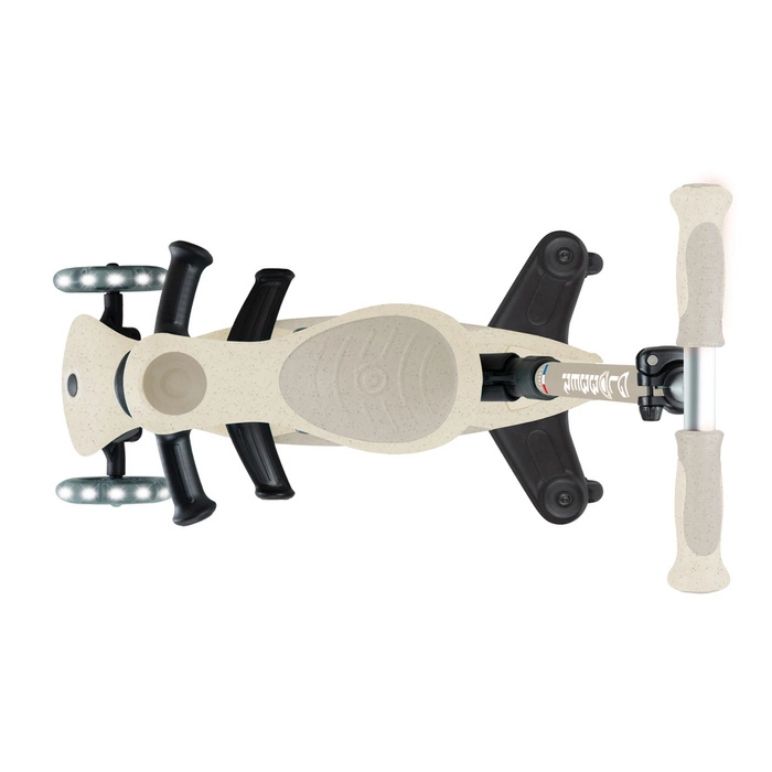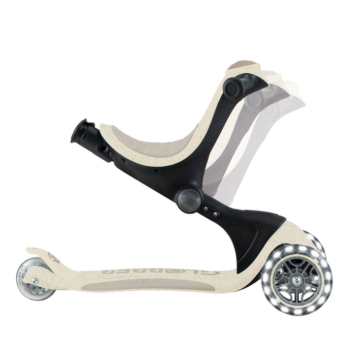 Konstrukcja w 100% bez użycia narzędzi pozwala na łatwą zmianę trybów bez konieczności używania narzędzi lub śrub — GO•UP DELUXE LIGHTS ECO LOGIC 360° ma sprężynowe przyciski i pokrętła, które umożliwiają płynne przejście z trybu jeździka w tryb jeździka biegowego lub hulajnogi.