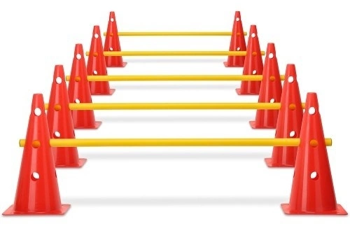 Zestaw składa się z dziesięciu stabilnych pachołków i pięciu lasek treningowych, które można łatwo łączyć, tworząc przeszkody do różnorodnych ćwiczeń. Dzięki temu produkt nadaje się zarówno do indywidualnego treningu, jak i zajęć grupowych.