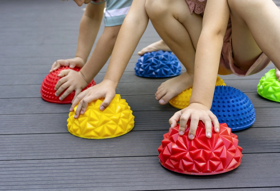 Półkula sensoryczna przeznaczona do ćwiczeń równowagi, korekcji wad postawy oraz masażu stóp. Bardzo dobrze sprawdzają się podczas zabawy z dziećmi, są uatrakcyjnieniem zajęć grupowych. Specjalne stożkowe kolce pobudzają receptory czuciowe i poprawiają ukrwienie.