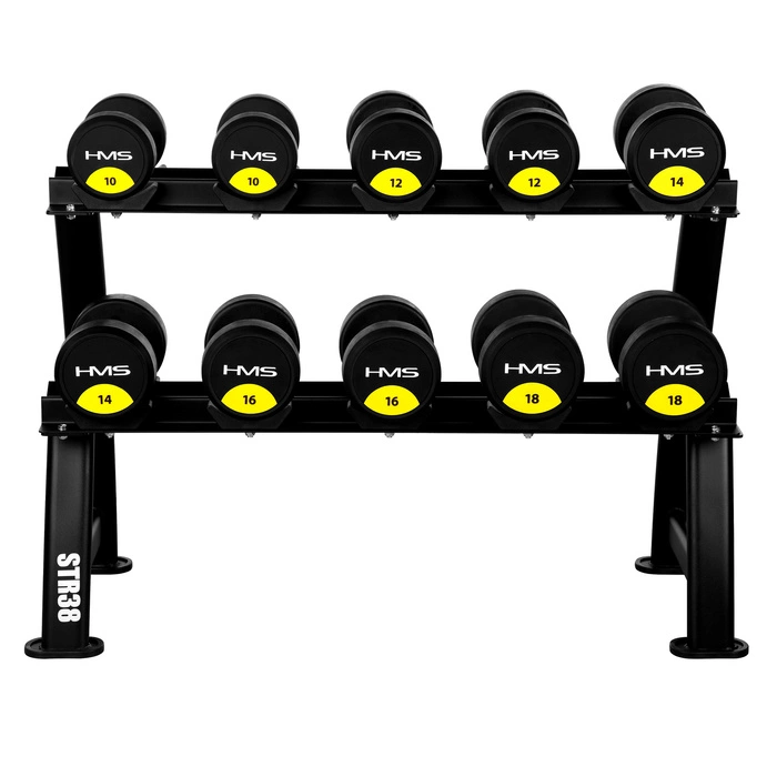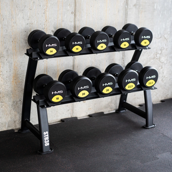STR38 został zaprojektowany z myślą o szerokiej gamie hantli – od klasycznych stalowych, przez żeliwne, aż po nowoczesne modele z powłoką poliuretanową. Pozwala to na przechowywanie zarówno hantli do ćwiczeń siłowych, jak i lekkich hantli fitness czy rehabilitacyjnych. Przykładowo, w domowej siłowni można na nim wygodnie ustawić zarówno hantle do ćwiczeń ogólnorozwojowych, jak i cięższe hantle do treningu siłowego, a w klubie fitness umożliwi szybki dostęp do różnorodnych obciążeń przez wielu użytkowników jednocześnie.