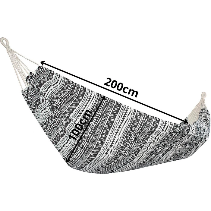 Hamak ogrodowy został zaprojektowany tak, aby zapewnić maksymalny komfort dla jednej osoby. Dzięki wymiarom 200x100 cm oferuje wystarczająco dużo miejsca, by wygodnie się ułożyć i zrelaksować, jednocześnie gwarantując stabilność i odpowiednie podparcie ciała.