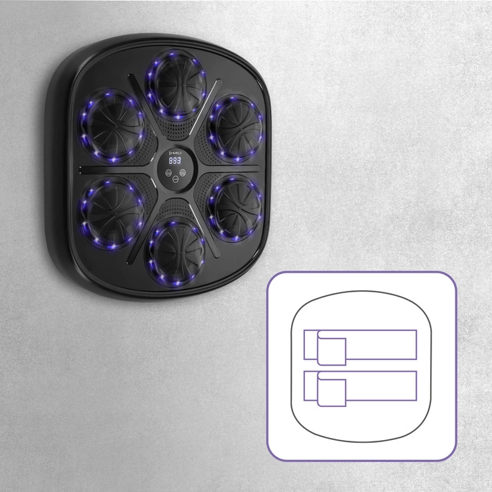 Elektroniczna tarcza bokserska TB03 w kolorze czarnym to rozwiązanie dedykowane osobom ceniącym nowoczesność i funkcjonalność w codziennym treningu. Kompaktowe wymiary (44,8 x 41,8 x 7,5 cm) sprawiają, że urządzenie z łatwością znajdzie miejsce nawet w niewielkim mieszkaniu, pozwalając na efektywne ćwiczenia bez konieczności przearanżowania przestrzeni. Montaż tarczy jest wyjątkowo prosty – wystarczy użyć dołączonych rzepów lub naklejek, co umożliwia szybkie przymocowanie jej do ściany lub innej płaskiej powierzchni bez użycia narzędzi. Dzięki temu tarcza sprawdzi się zarówno podczas krótkiego treningu po pracy, jak i w trakcie intensywnych, codziennych sesji bokserskich w domowym zaciszu.