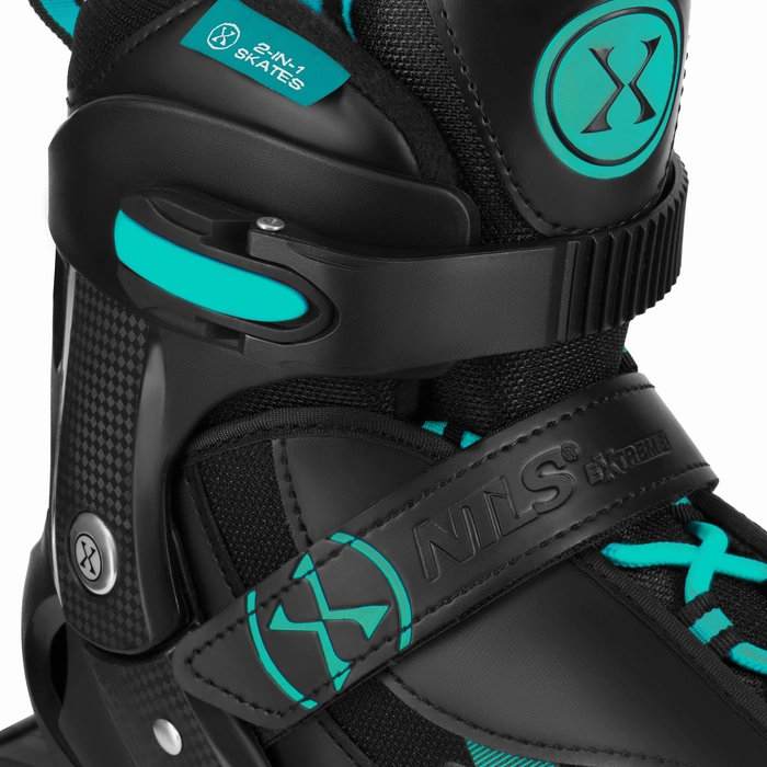 NH382 ŁYŻWOROLKI 2W1 ENZO TURKUSOWE ROZM. M(36-39) Z WYM. PŁOZĄ HOKEJOWĄ NILS EXTREME