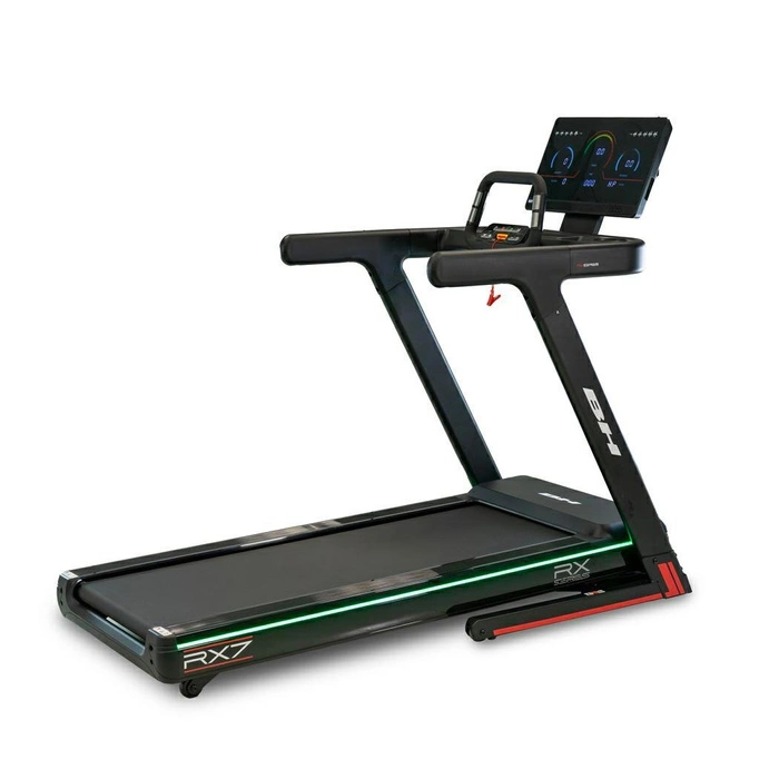 Bieżnia treningowa RX7 LED G6173 BH Fitness to solidne, zaawansowane urządzenie stworzone z myślą o intensywnym treningu w warunkach domowych. Dzięki stabilnej konstrukcji, dobrym parametrom technicznym oraz nowoczesnym funkcjom, bieżnia RX7 zapewnia wygodę, bezpieczeństwo i efektywność podczas każdego treningu cardio.