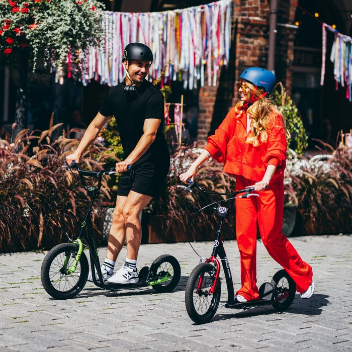WH10612 – miejskie tempo, pełna kontrola Hulajnoga WH10612 została stworzona z myślą o użytkownikach, którzy cenią aktywny styl życia i szukają solidnego sprzętu do codziennego przemieszczania się. Jej dynamiczna konstrukcja, duże koła oraz lekka rama sprawiają, że idealnie sprawdza się w miejskim zgiełku, na ścieżkach rowerowych czy podczas weekendowych wypadów. WH10612 to sprzęt, który dotrzyma Ci kroku – bez względu na trasę. Duże koła – jazda bez kompromisów Dzięki pompowanym kołom 16” z przodu i 12” z tyłu, hulajnoga WH10612 bez trudu pokonuje nierówności terenu i zapewnia doskonałą przyczepność. Jazda po wyboistym chodniku, ścieżce w parku czy osiedlowej kostce brukowej nie stanowi problemu – koła działają jak naturalne amortyzatory, chroniąc Twoje stawy i zwiększając komfort każdego przejazdu. Lekka, ale niezwykle wytrzymała Rama hulajnogi została wykonana z aluminiowego stopu, który łączy niską wagę z wysoką odpornością na uszkodzenia. Dzięki temu WH10612 waży jedynie 8,5 kg, co czyni ją łatwą w przenoszeniu, przechowywaniu i transportowaniu. Jednocześnie hulajnoga pozostaje stabilna i trwała – nawet przy maksymalnym obciążeniu do 100 kg. Przemyślane detale – maksymalne bezpieczeństwo Bezpieczeństwo to nie dodatek – to standard. WH10612 posiada ręczny hamulec, który zapewnia szybkie i skuteczne zatrzymywanie nawet przy większej prędkości. Antypoślizgowy deck o wymiarach 37 × 12,5 cm daje pełną kontrolę nad jazdą, a dwie miękkie osłony (na kierownicę i wspornik) chronią newralgiczne miejsca podczas ewentualnych upadków. Każdy element hulajnogi został zaprojektowany z myślą o bezpieczeństwie użytkownika. Uniwersalna – dla całej rodziny Z hulajnogi WH10612 mogą korzystać zarówno dzieci, jak i dorośli. Jest wystarczająco lekka, by bez problemu używały jej młodsze osoby, ale też wystarczająco solidna, by sprostać potrzebom dorosłych. To doskonały wybór dla rodzin, które chcą wspólnie spędzać czas aktywnie – bez kompromisów w zakresie jakości. Specyfikacja: Materiał ramy: stop aluminium Koła: przód 16", tył 12" – pompowane Kierownica: stalowa Rączki: TPR (termoplastyczna guma) Wymiary podestu: 37 × 12,5 cm Wymiary hulajnogi: długość 124 cm / szerokość 67 cm / wysokość 98 cm Hamulec: ręczny Antypoślizgowy podest: tak Osłony bezpieczeństwa: 2 sztuki (na kierownicy i wsporniku) Maksymalne obciążenie: 100 kg Waga hulajnogi: 8,5 kg Łożyska: typu looseball Uwagi: Nie przeznaczona do użytku komercyjnego Gwarancja 24 miesiące Importer: Abisal Sp. z o.o.| Polska | 41-807 Zabrze | ul. Pyskowicka 17 | e-mail: abisal@abisal.pl Abisal Sp. z o.o. deklaruje, iż produkty sprzedawane przez firmę są bezpieczne i spełniają wymagania zawarte w Ustawie o ogólnym bezpieczeństwie produktów z dnia 12 grudnia 2003r. (Dz.U. z dnia 31 grudnia 2003r.)