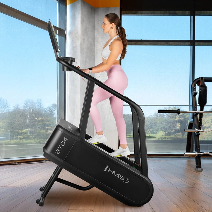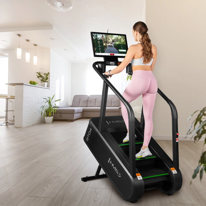 ST04 to nie tylko urządzenie do ćwiczeń, ale także centrum multimedialne. Dzięki zintegrowanemu systemowi Android 11, łączności WiFi oraz dużemu ekranowi LED o wymiarach 34 x 57 cm, użytkownicy mogą korzystać z popularnych aplikacji takich jak YouTube, Netflix, Spotify czy przeglądarka Chrome podczas treningu. Funkcja Bluetooth pozwala na sparowanie urządzenia z pasem telemetrycznym, co umożliwia precyzyjny pomiar tętna. Przykładowo, możesz oglądać ulubione seriale lub słuchać motywującej muzyki, jednocześnie realizując swój plan treningowy, co sprawia, że czas spędzony na schodach mija szybciej i przyjemniej.