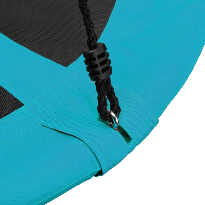 Idealnie sprawdzi się, do powieszenia w ogrodzie, na tarasie czy balkonie. W przypadku złej pogody, może być także zawieszone w domu. Montaż jest bardzo prosty, więc w kilka chwil, będziemy gotowi do zabawy. Huśtawka, ma okrągłe siedzisko o średnicy aż 100 cm, co za tym idzie pomieści więcej, niż jednego miłośnika tej zabawy. To niewątpliwy atut, ponieważ wszyscy wiemy, że w towarzystwie jest lepsza zabawa. Dzięki możliwości regulacji długości lin mocujących, możemy dostosować wysokość produktu, do wzrostu użytkownika. W połączeniu, z maksymalnym dopuszczalnym obciążeniem 150 kg, mówi to tylko jedno – to coś dla małych i dużych. Dla dzieci super zabawa i wygłupy, dla rodziców relaks.