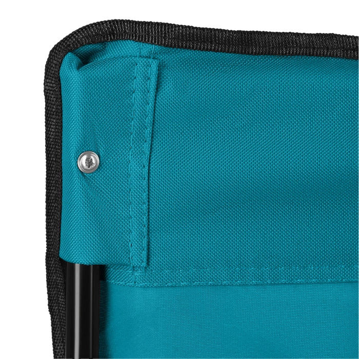Siedzisko i oparcie wykonano z wytrzymałego poliestru 600D, który dodatkowo został powleczony warstwą PVC. Materiał ten jest nie tylko odporny na przetarcia i wilgoć, ale również bardzo łatwy w czyszczeniu. Czarna taśma wzmacniająca poprawia trwałość obrzeży i dodaje eleganckiego wykończenia.