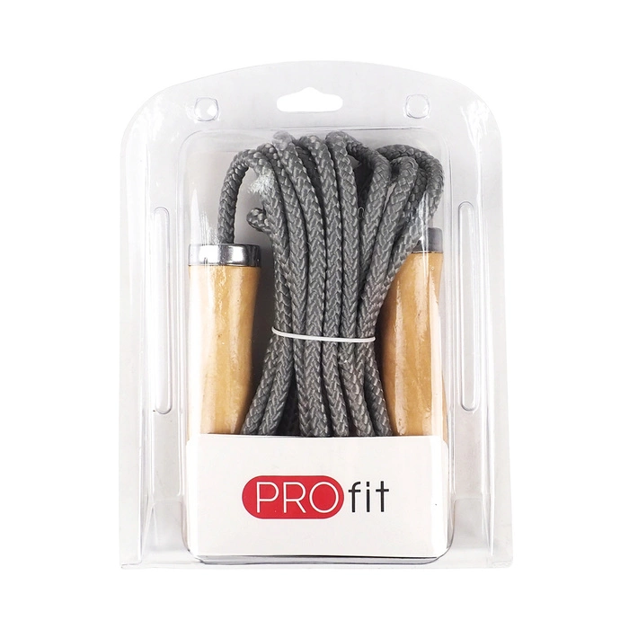Skakanka Profit sprawdzi się podczas treningów lub zajęć szkolnych. Lakierowane, drewniane rączki.