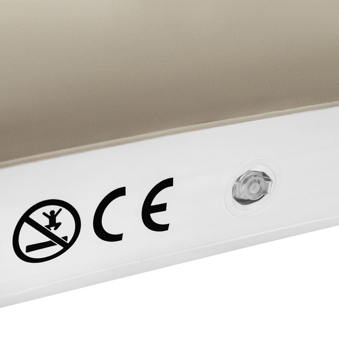 Materac został wykonany z wytrzymałego tworzywa PVC, odpornego na przetarcia, rozdarcia i łatwego w czyszczeniu. Wewnętrzna struktura wspiera równomierne rozłożenie masy ciała, co przekłada się na komfortowy sen i wypoczynek. Materiał nie przepuszcza powietrza, dzięki czemu materac długo utrzymuje odpowiednie ciśnienie bez konieczności częstego dopompowywania. Spód materaca jest dodatkowo wzmocniony, co poprawia jego stabilność nawet na nierównym podłożu.