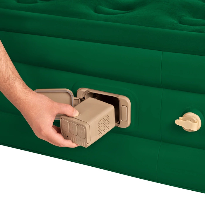 W komplecie znajduje się pompka elektryczna, która umożliwia szybkie napompowanie i równie sprawne spuszczenie powietrza. Dzięki temu przygotowanie materaca do użytku lub jego złożenie zajmuje minimalną ilość czasu. Materac po złożeniu zajmuje niewiele miejsca, co ułatwia jego transport i przechowywanie.