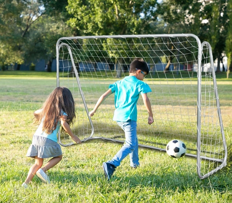 - Wysokiej jakości bramka piłkarska posiada mocne, stalowe słupki, które są wytrzymałe i odporne na warunki atmosferyczne. Stalowy stelaż zapewnia stabilność bramki podczas użytkowania