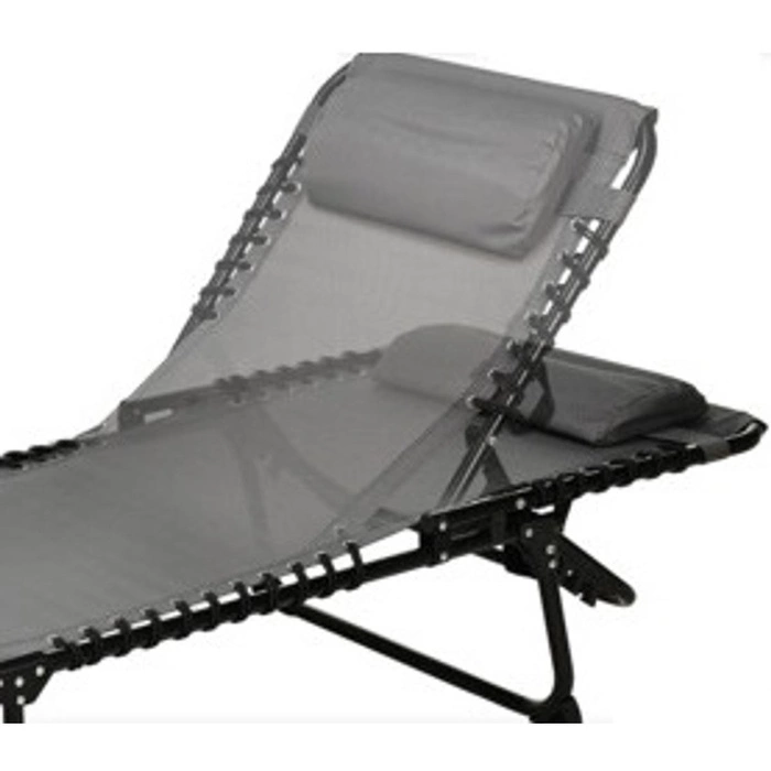 Siedzisko leżaka wykonano z materiału Textilene, który jest przewiewny i odporny na wilgoć, co sprawia, że komfort użytkowania jest wysoki nawet w ciepłe dni. Materiał jest łatwy do czyszczenia – wystarczy przetrzeć go wilgotną ściereczką, aby usunąć kurz i zabrudzenia. Dzięki odporności.