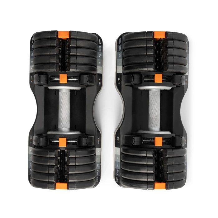 Jednym z największych atutów tych hantli jest możliwość regulacji ciężaru w krokach co 1, 2 lub 5 kg, od 5 do 25 kg. Dzięki temu możesz precyzyjnie dopasować obciążenie do specyfiki każdego ćwiczenia. Lekkie ustawienia są idealne do ćwiczeń rehabilitacyjnych, treningów wytrzymałościowych czy izolowania mniejszych grup mięśniowych. Większe ciężary z kolei świetnie sprawdzają się w budowaniu siły i masy mięśniowej. Regulacja jest szybka i intuicyjna – wystarczy jeden ruch, by dostosować hantle do swoich potrzeb, co pozwala na płynne przechodzenie między ćwiczeniami bez przerywania rytmu treningu.