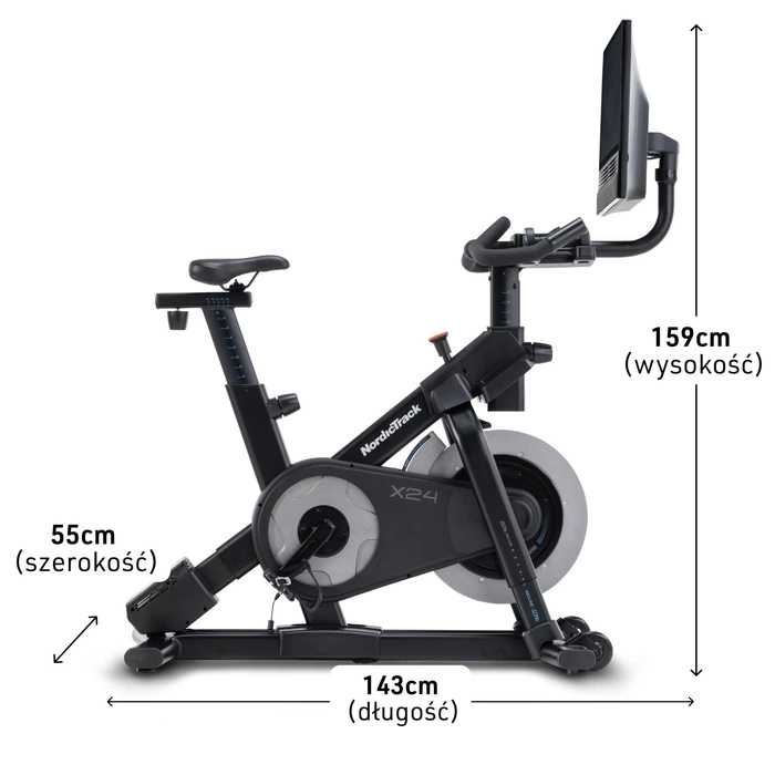 Rower spinningowy X24 marki NordicTrack to innowacyjne urządzenie łączy nowoczesną technologię z funkcjonalnością, dostarczając realistyczne i angażujące treningi, które przenoszą domową jazdę na zupełnie nowy poziom. X24 sprawia, że osiąganie celów fitness staje się prostsze i bardziej satysfakcjonujące – to idealny wybór dla każdego, kto szuka profesjonalnego sprzętu i motywacji do treningów w jednym.